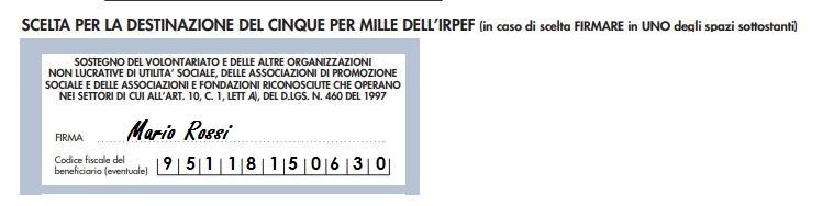Nella dichierazione dei redditi inserisci il nostro CODICE FISCALE: 95118150630
