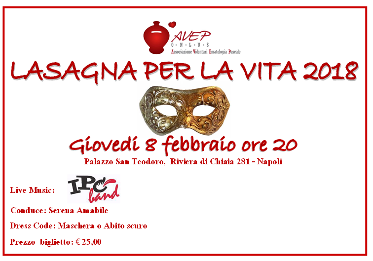 Lasagna per la Vita 2018, un Galà di beneficenza per la raccolta fondi a sostegno del Reparto di Ematologia dell’Ospedale Pascale di Napoli.