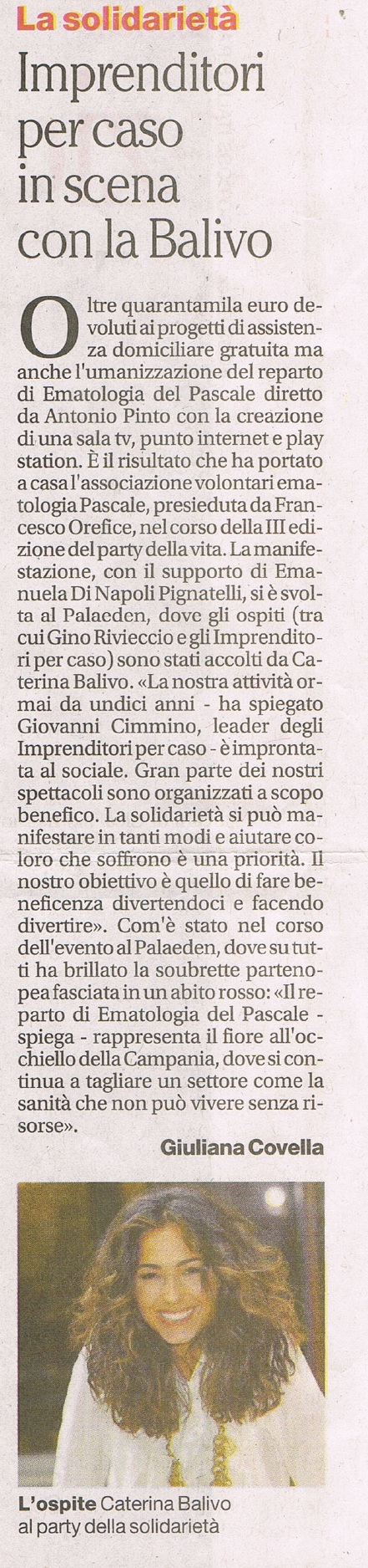 L'associazione Volontari Ematologia Pascale organizza il "Party per la vita 2011" presentato da Caterina Balivo. Tanti ospiti, musica e moda con il defilè Cannella.